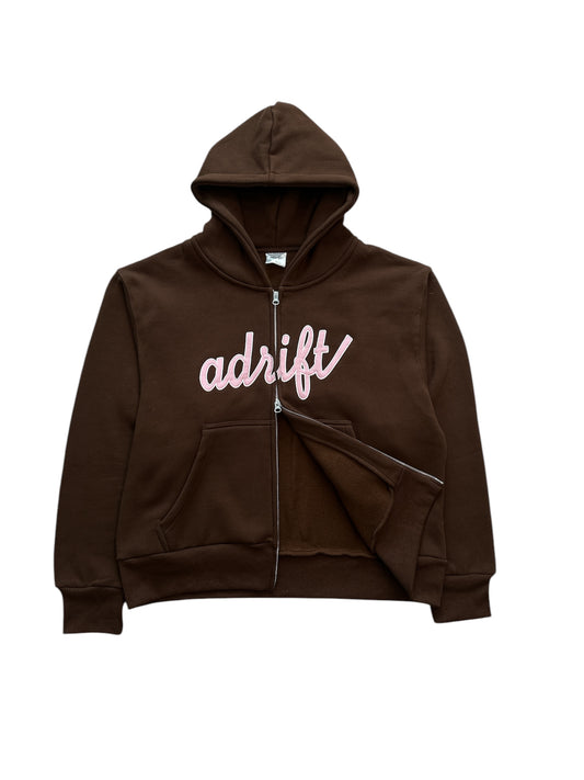 Adrift Script Zip Up Brown Pink
