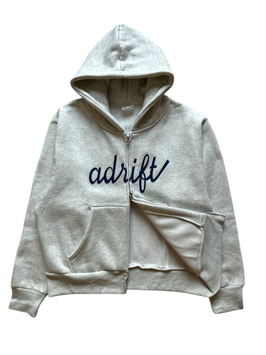 Adrift Script Zip Up Ash Grey Blue