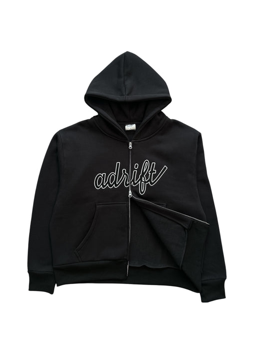 Adrift Script Zip Up Washed Black